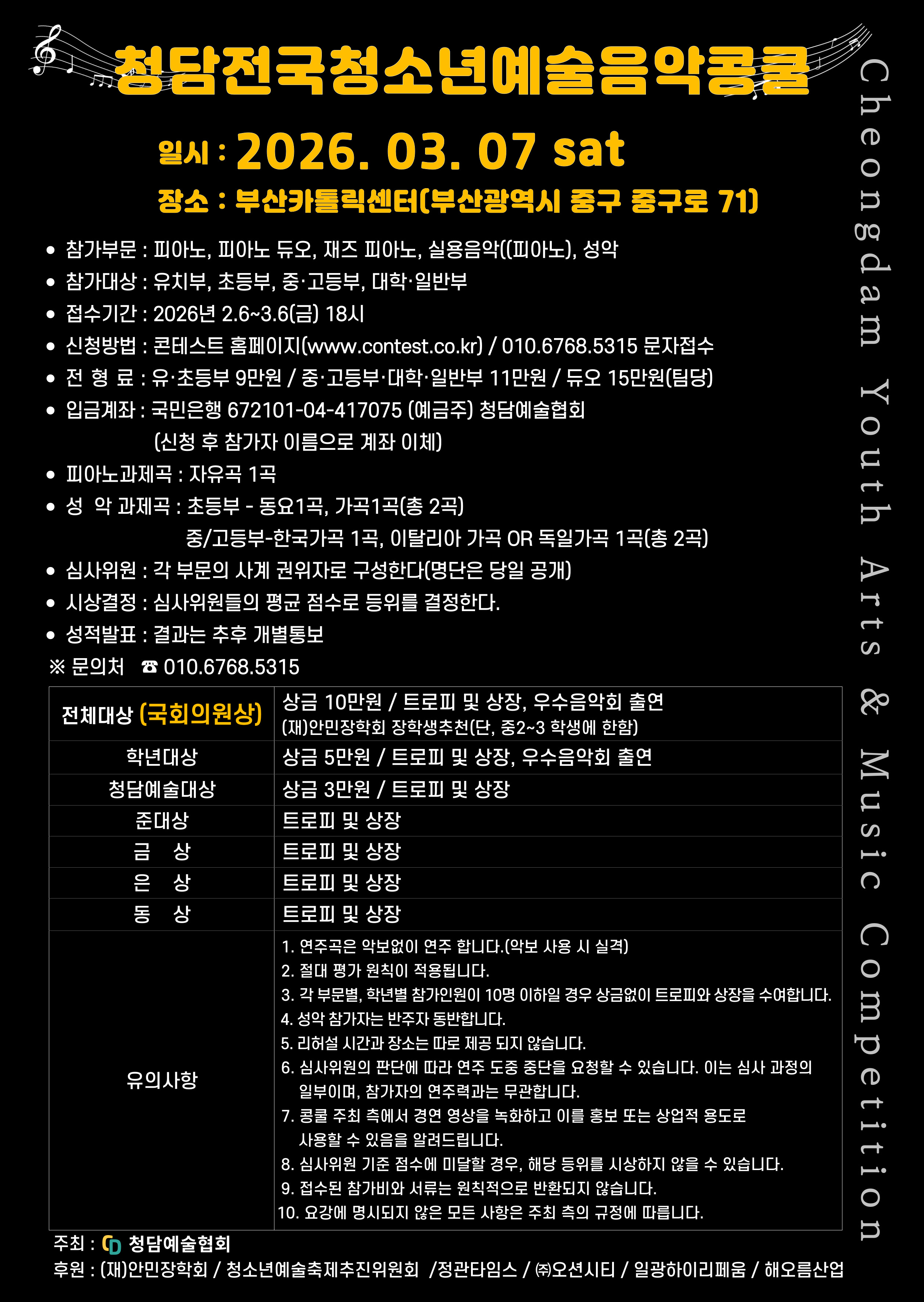 • 입금계좌 : 국민은행 672101-04-417075 (예금주) 청담예술협회
