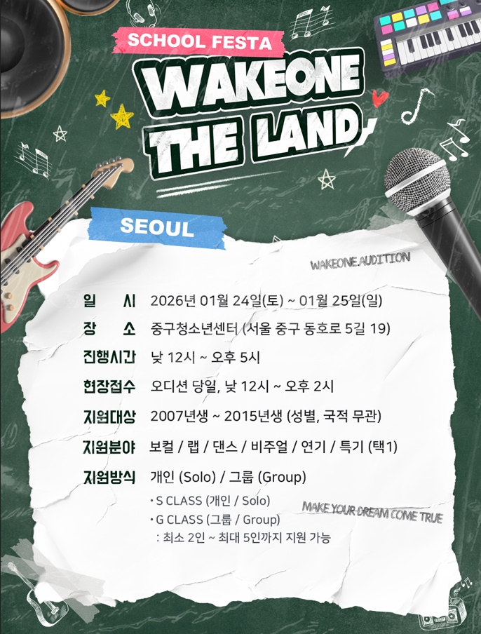 - 신청 링크 : https://linktr.ee/WAKEONEAUDITION