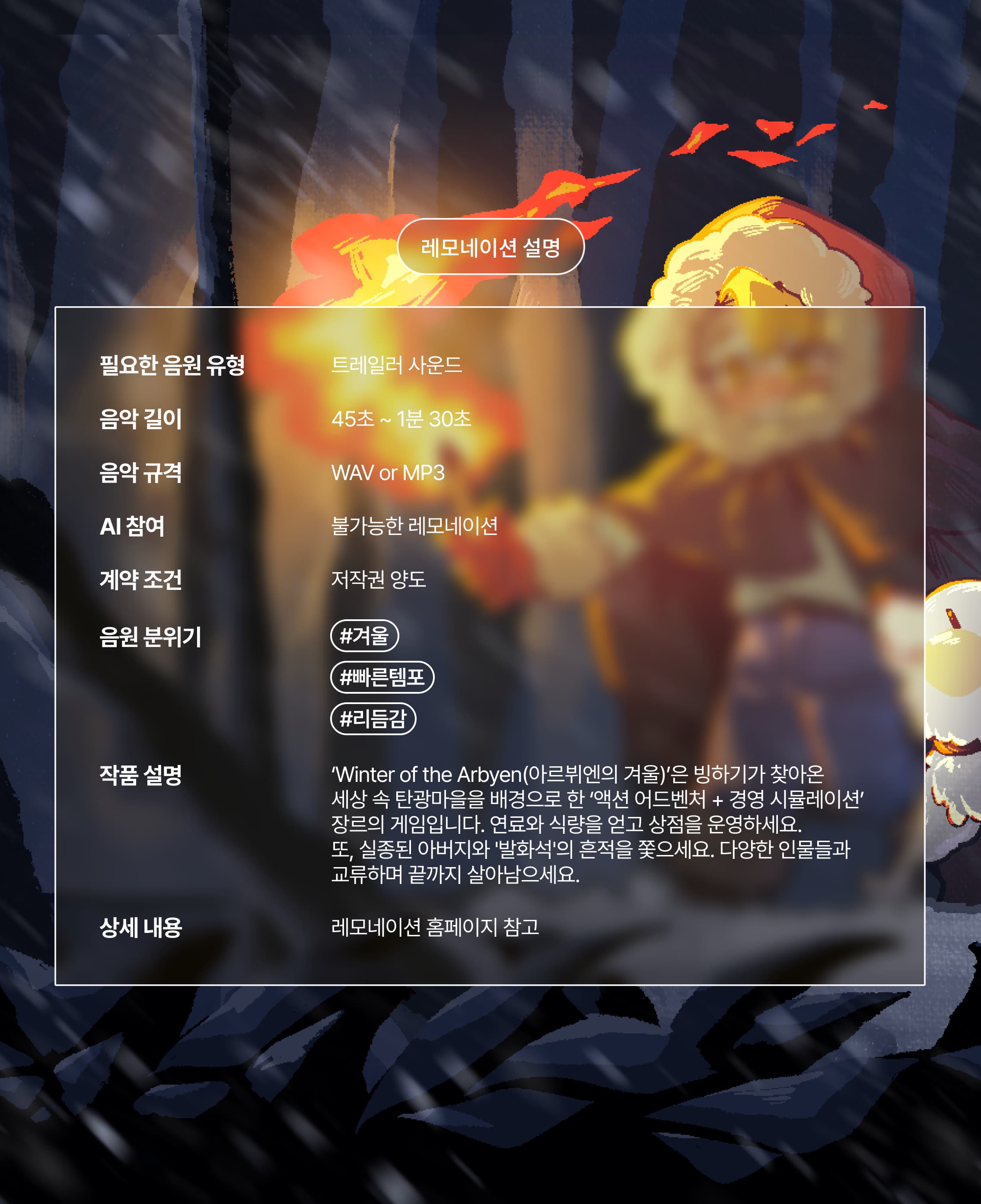 게임 '아르뷔엔의 겨울' 트레일러 사운드 BGM 공모전 레모네이션 (~1/31까지)