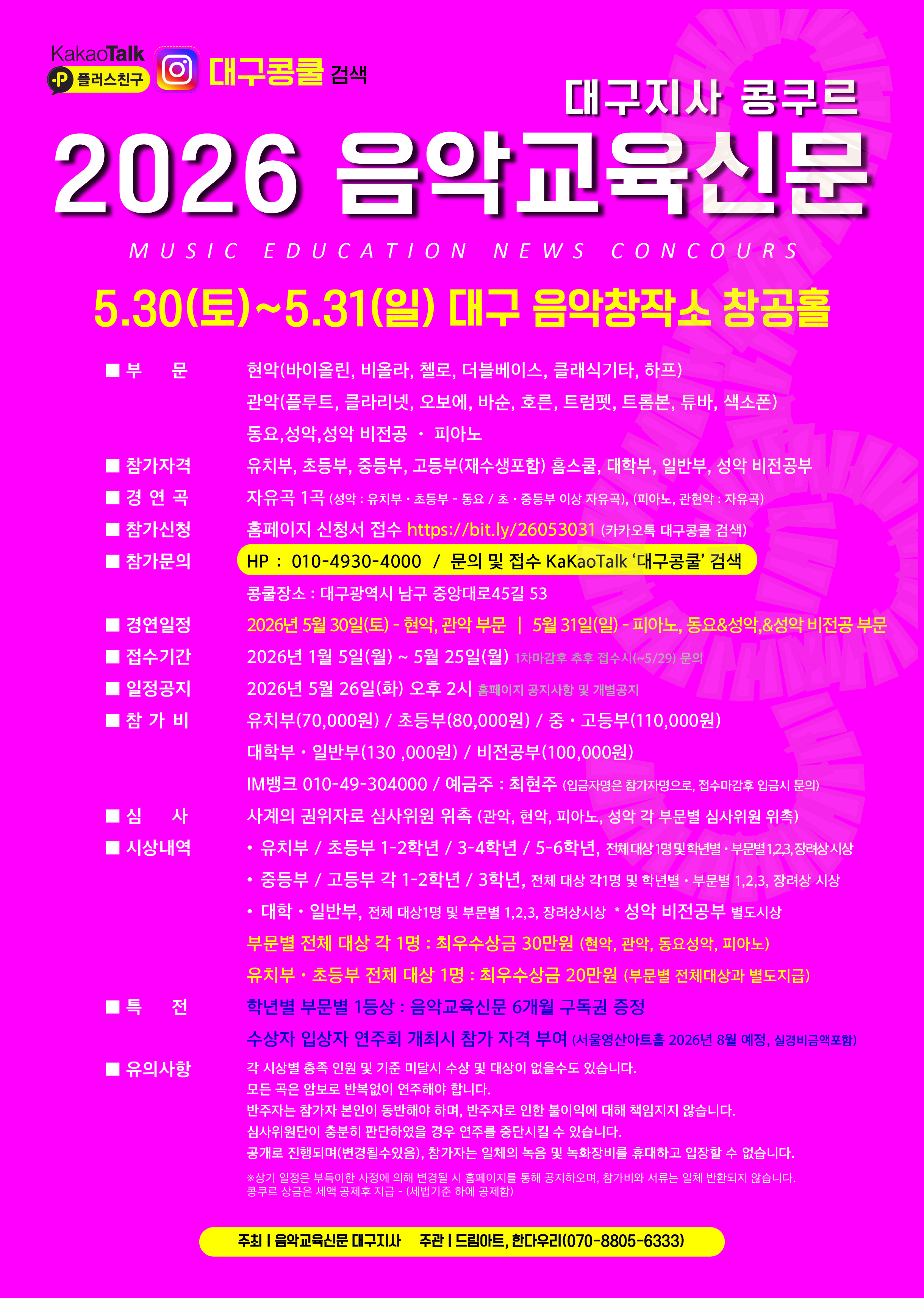 2026 음악교육신문대구지사 제12회 상반기콩쿠르