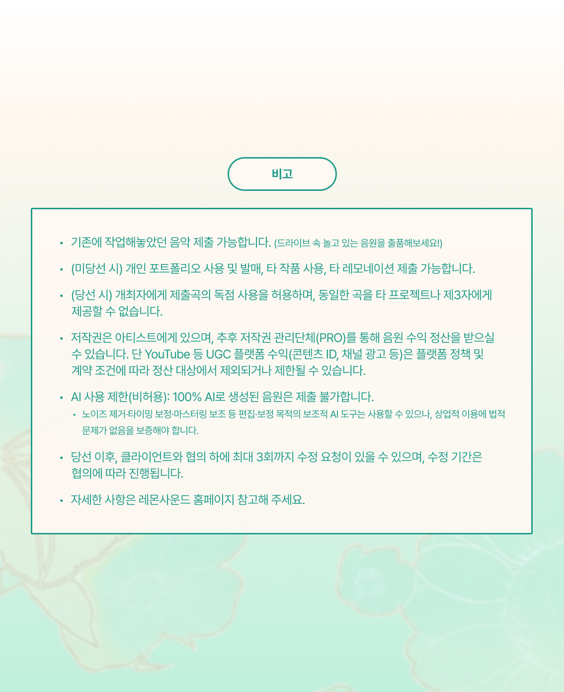 음원 규격 : .mp3 또는 .wav