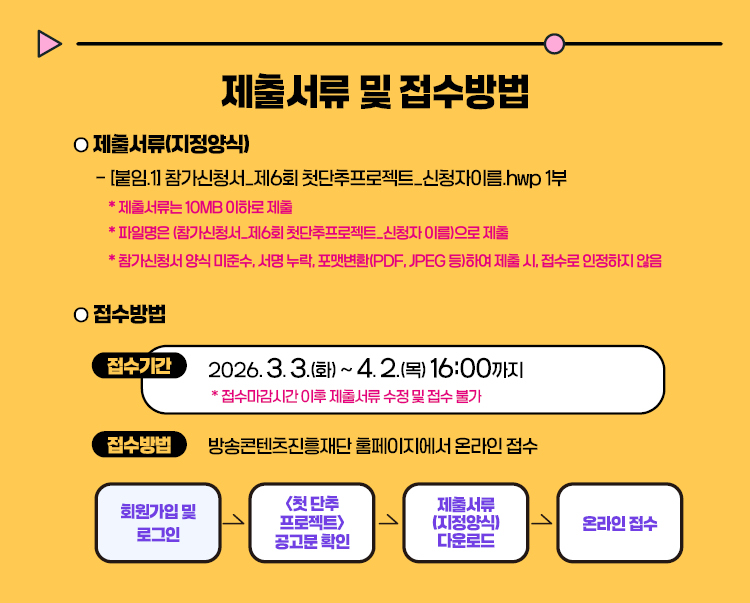 - 제작지원작품 완성 시 방송콘텐츠진흥재단 지원 사실을 크레딧에 명시해야 함