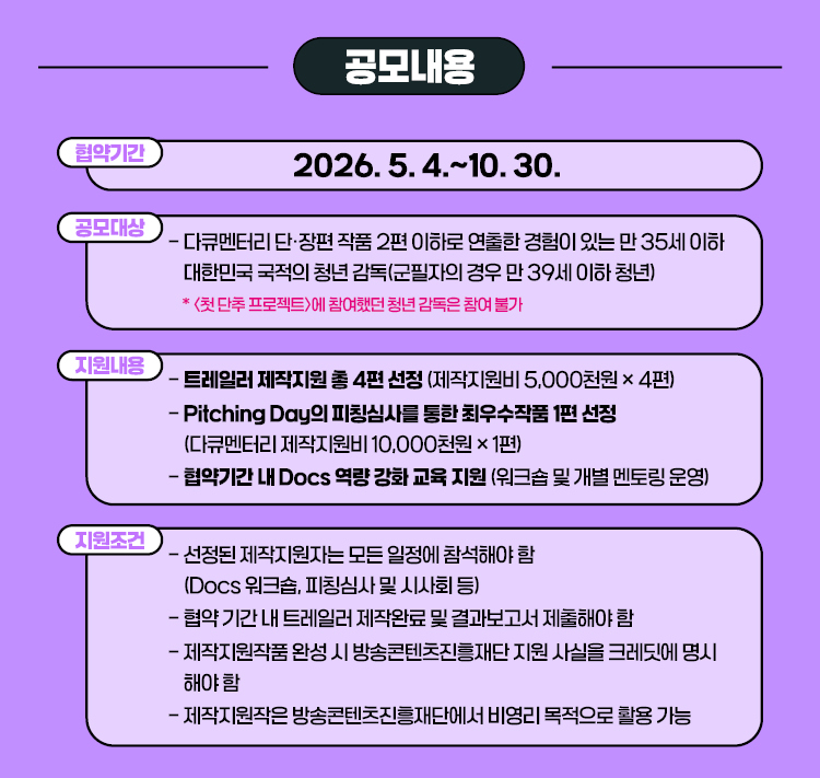 다큐멘터리를 지원하고자 합니다. 많은 관심과 참여 바랍니다”