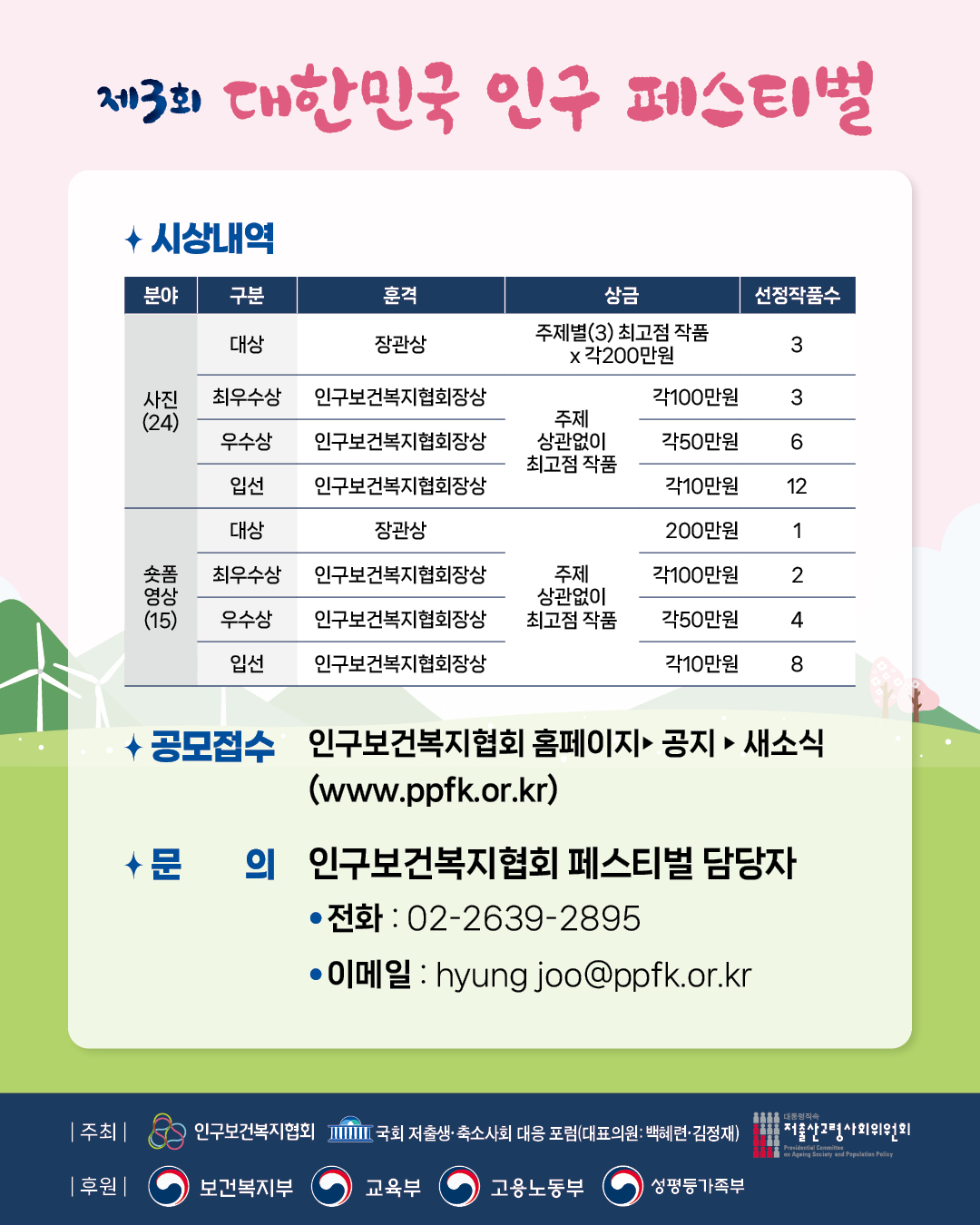 문의사항: 인구전략과 김형주 담당 02-2639-2895 / hyungjoo@ppfk.or.kr