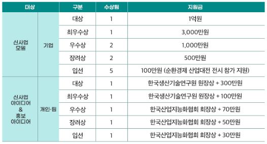 - (신사업 아이디어) 순환경제 관련 산업발전을 위한 혁신기술, 신사업 모델 등의 제안서