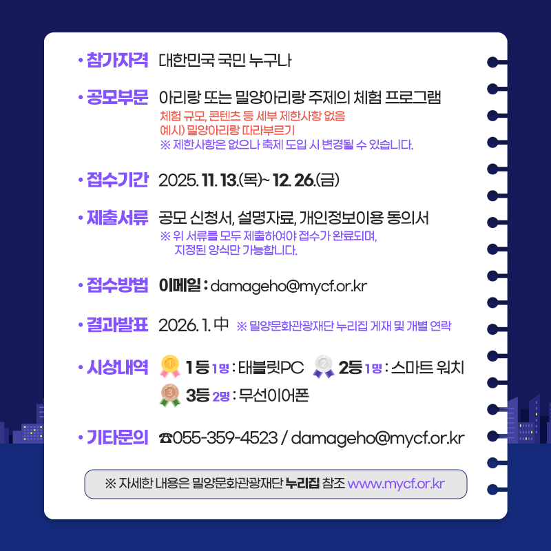 ※ 상세내용은 밀양문화관광재단 누리집 참조 (www.mycf.or.kr)