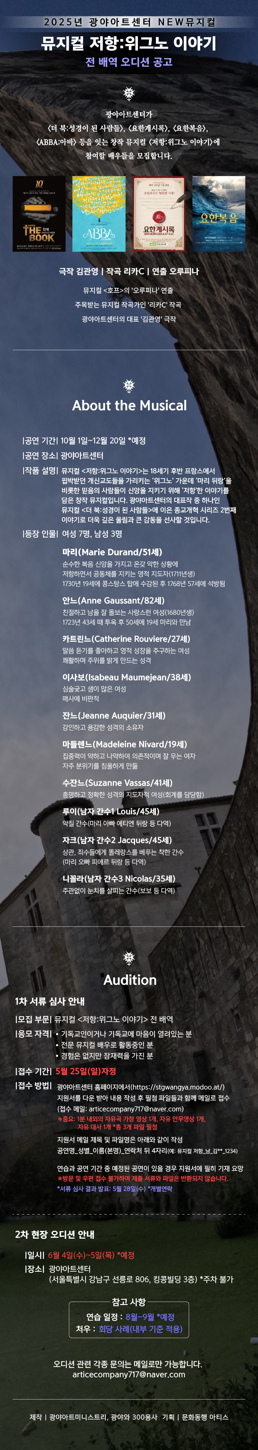 2025 광야아트센터 New 뮤지컬 <저항: 위그노 이야기> 전 배역 오디션