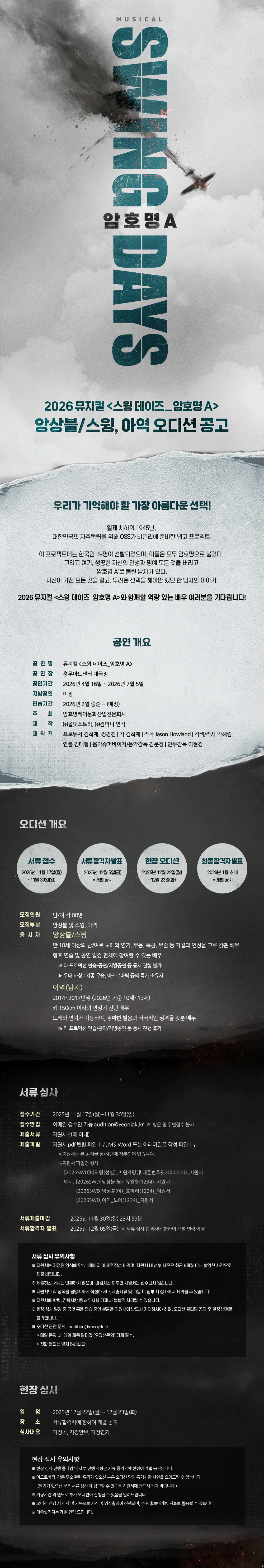 2026 뮤지컬 <스윙 데이즈_암호명A> 앙상블/스윙, 아역 오디션
