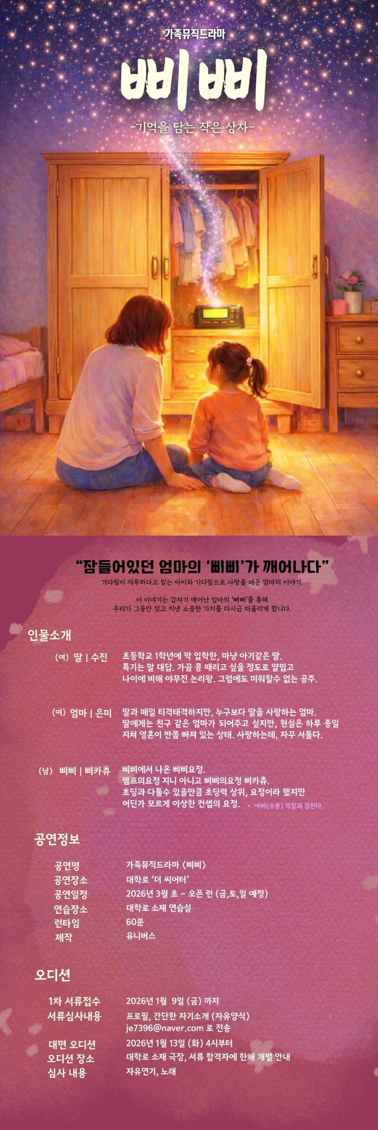 창작초연 뮤직드라마 <삐삐> 배우 모집