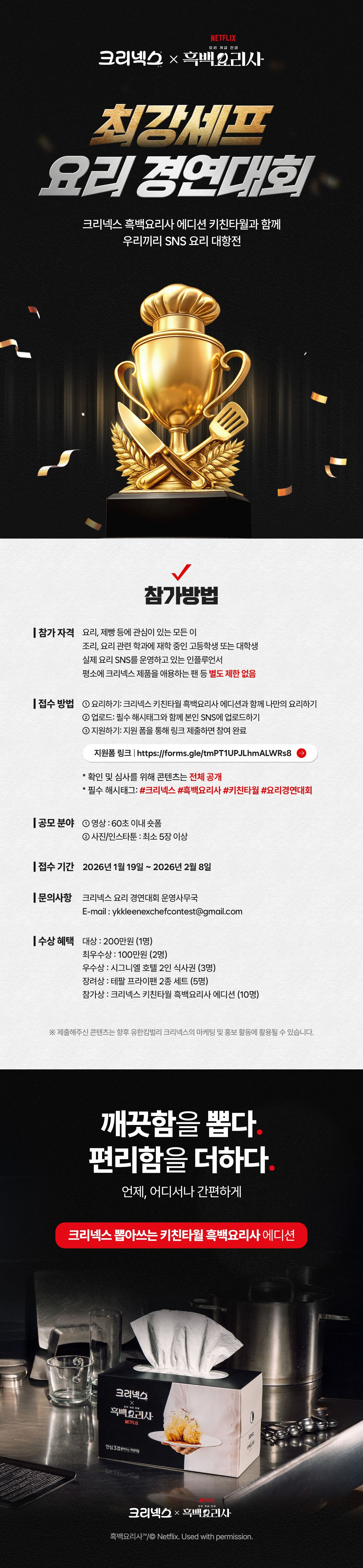 크리넥스 요리 경연대회 운영사무국 ykkleenexchefcontest@gmail.com