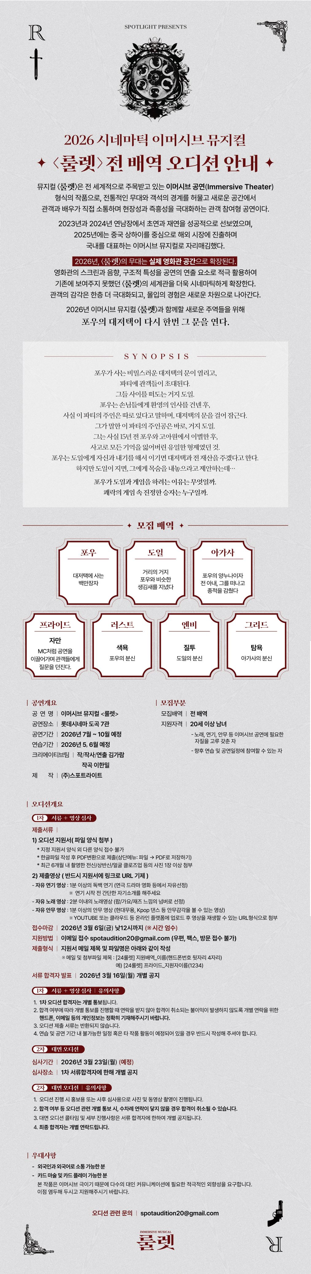 2026 시네마틱 이머시브 뮤지컬 <룰렛> 오디션