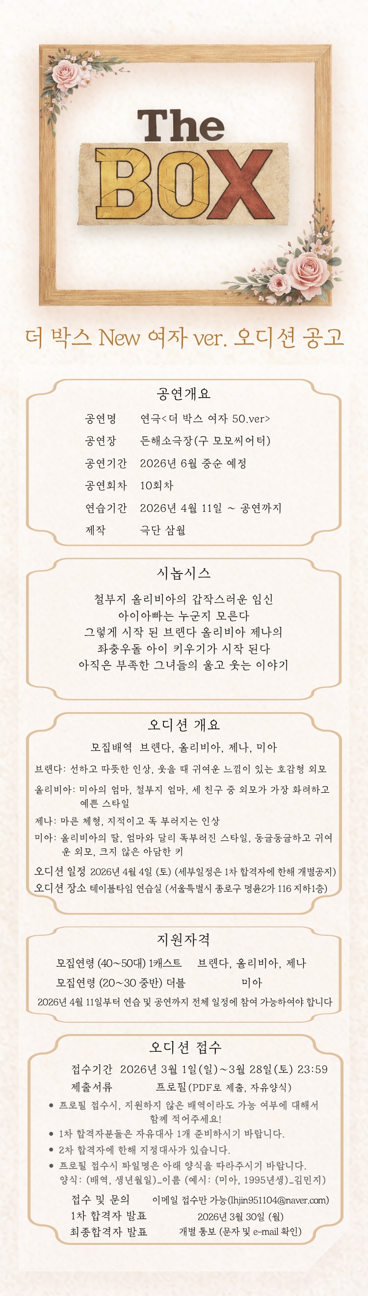 연극 더 박스(THE BOX) 2026 여자버전 오디션 공고