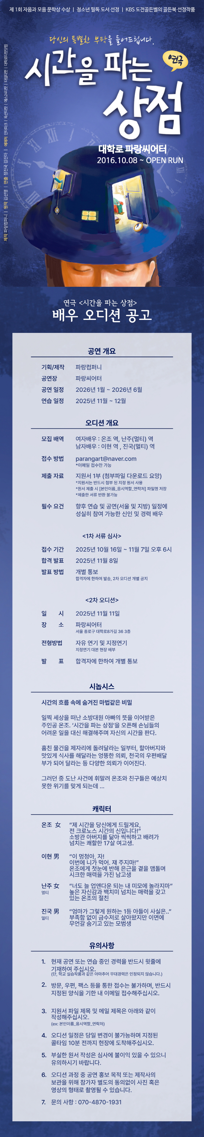 파랑컴퍼니 연극 [시간을 파는 상점] 오디션
