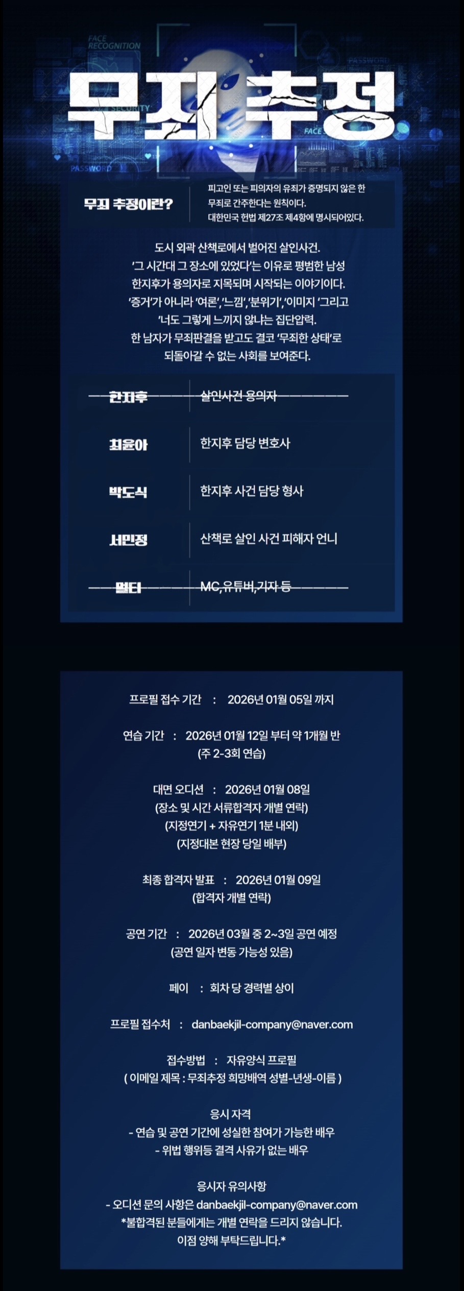 2026 연극 창작초연 <무죄추정> 배우 오디션