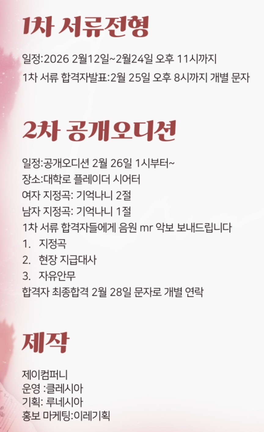 대학생 뮤지컬 동아리 더열정뮤지컬 44기 모집