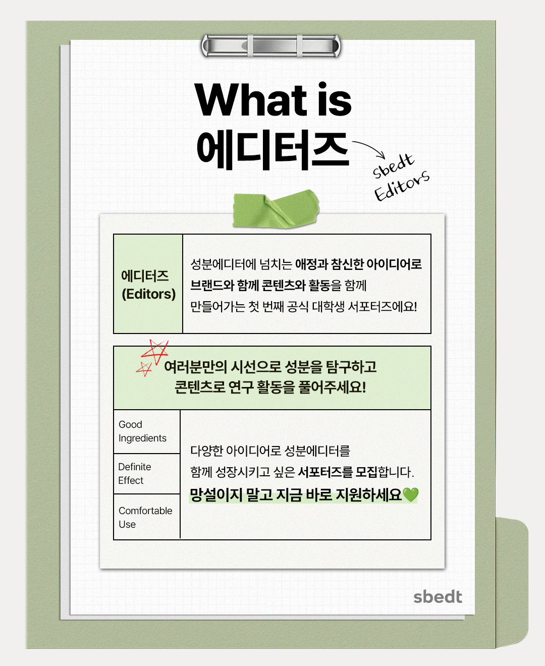 성분에디터의 첫 번째 대학생 서포터즈, '에디터즈 1기' 모집에 관심을 갖고 지원해주셔서 진심으로 감사드립니다.