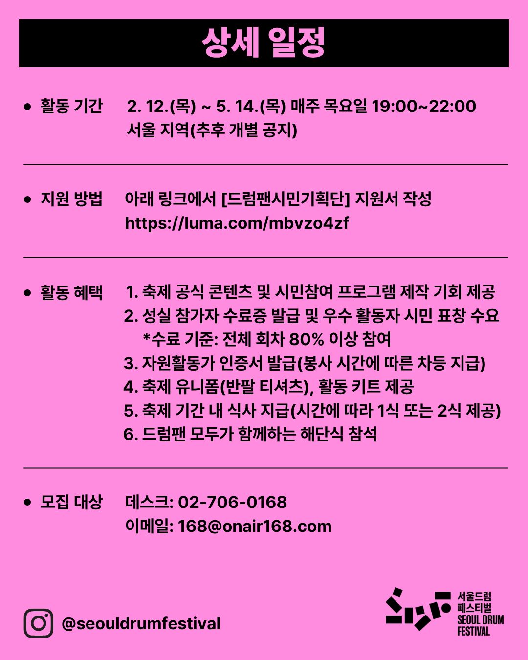 서울드럼페스티벌 인스타그램: https://www.instagram.com/seouldrumfestival/
