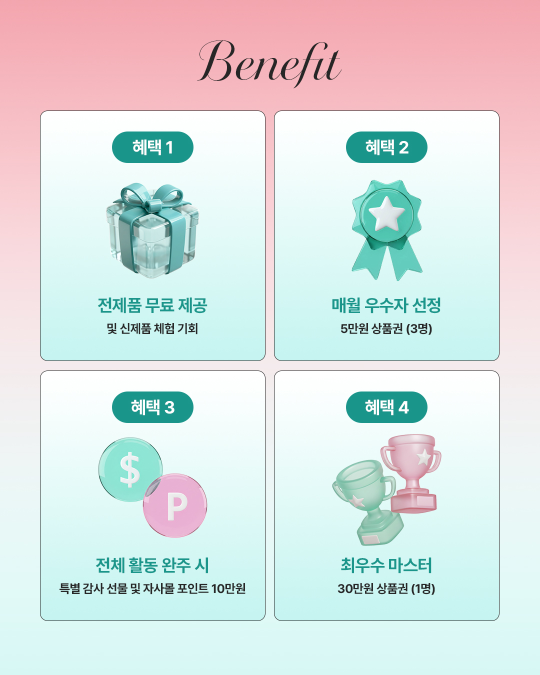 · 4개월 완주 시 전원 특별 감사 선물 및 자사몰 포인트 10만원 지급