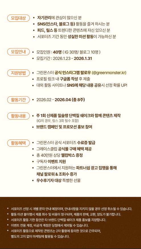 ![[그린몬스터] 밀슐랭 단백질 쉐이크 서포터즈 1기](/admincenter/files/meet/202601230855489456446.jpg)