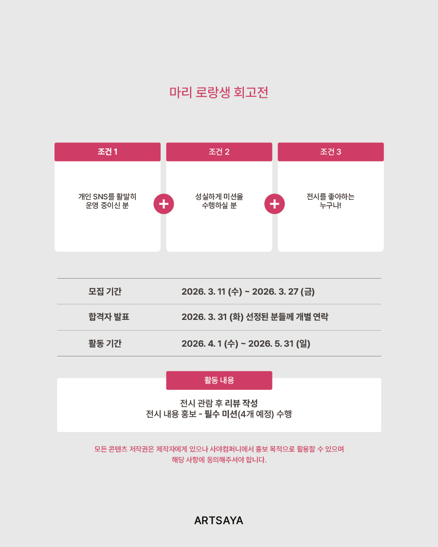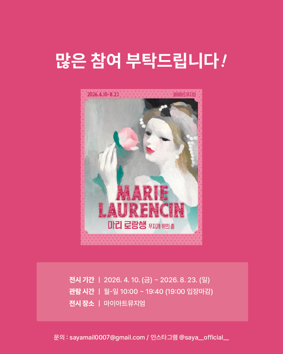 ![[사야컴퍼니] <마리 로랑생 회고전> 서포터즈 모집](/admincenter/files/meet/202603181218248172179.jpg)
