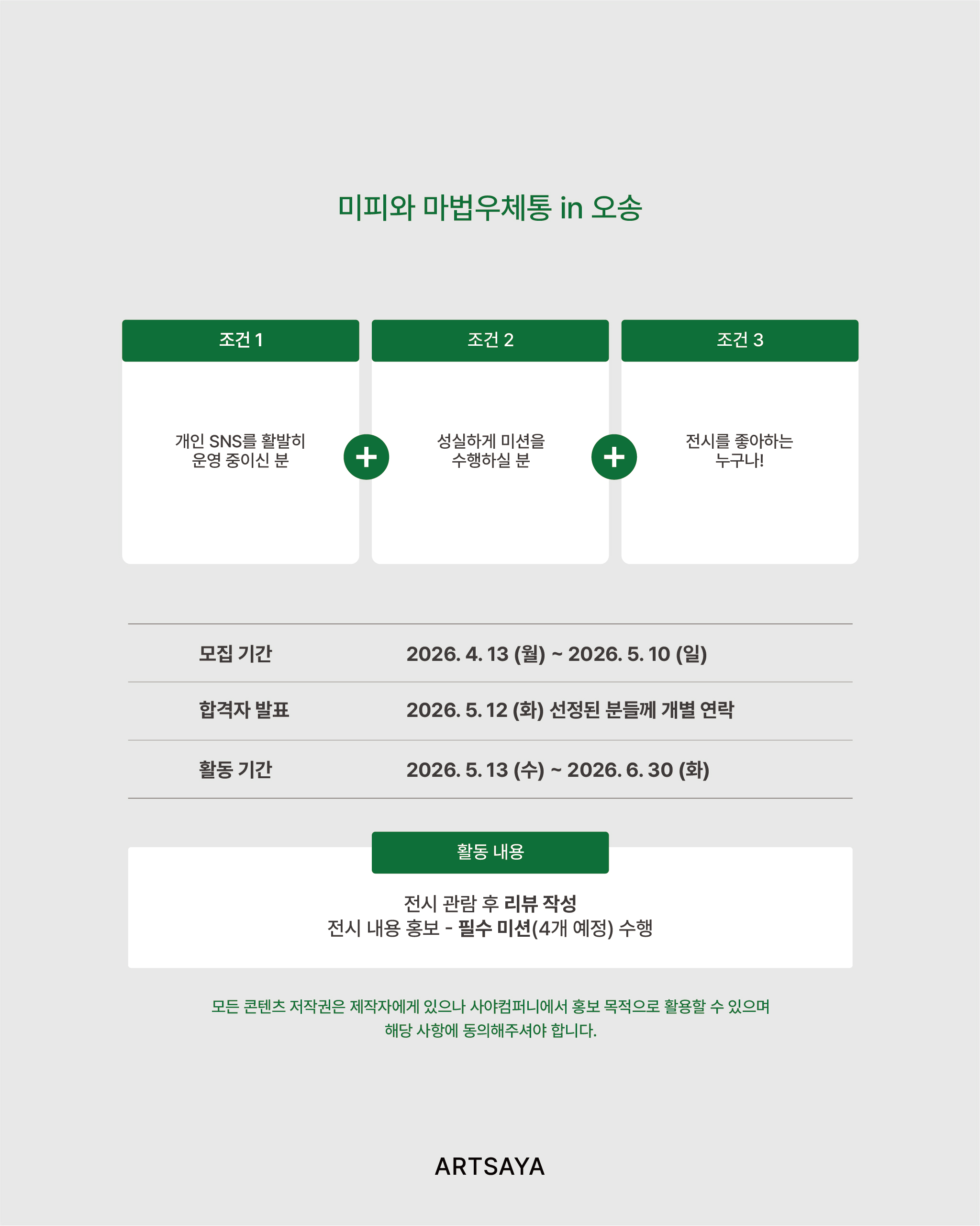 사야컴퍼니는 전시 홍보 목적으로 해당 콘텐츠를 활용할 수 있습니다.