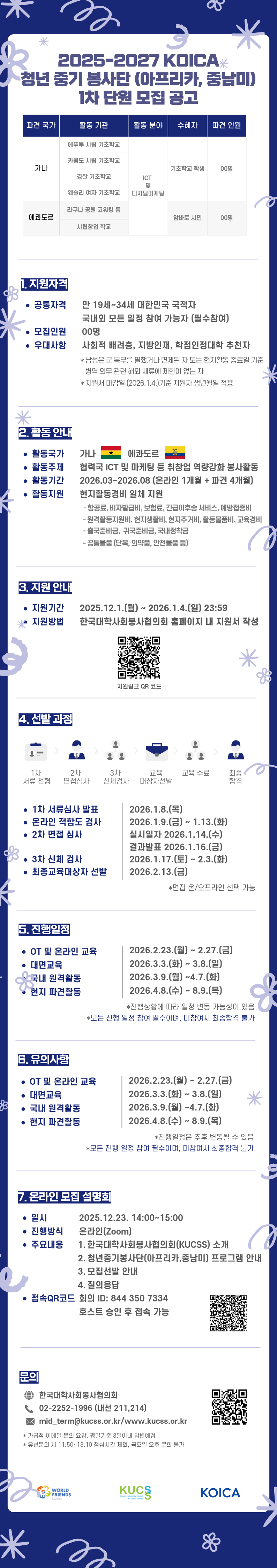 2025-2027 KOICA-청년중기봉사단(아프리카,중남미) 1차 파견 단원 모집