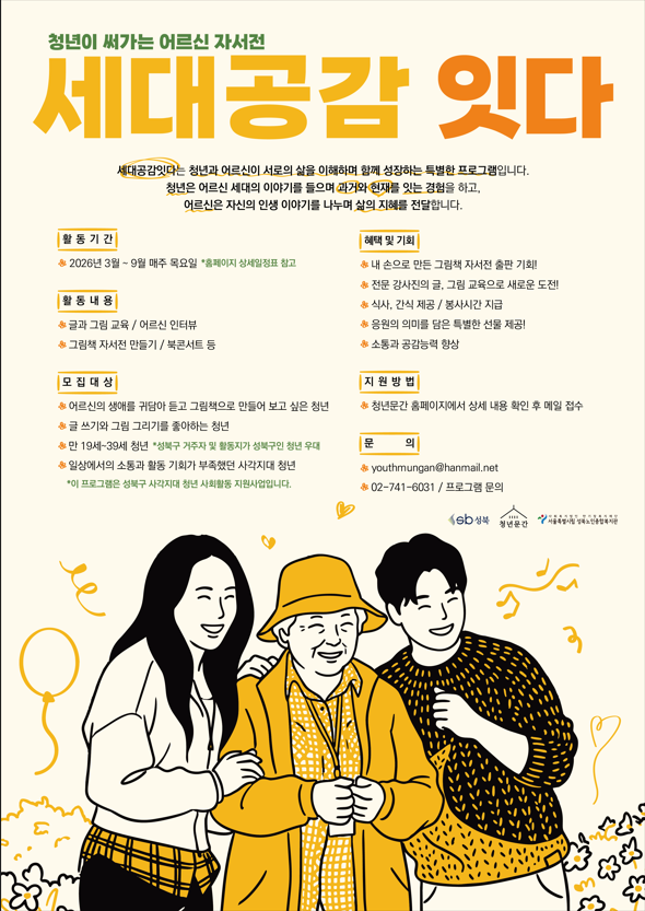 ![[청년문간] 2026 세대공감잇다 청년이 써가는 어르신 자서전_청년 참가자 모집](/admincenter/files/meet/202602191836503830577.png)