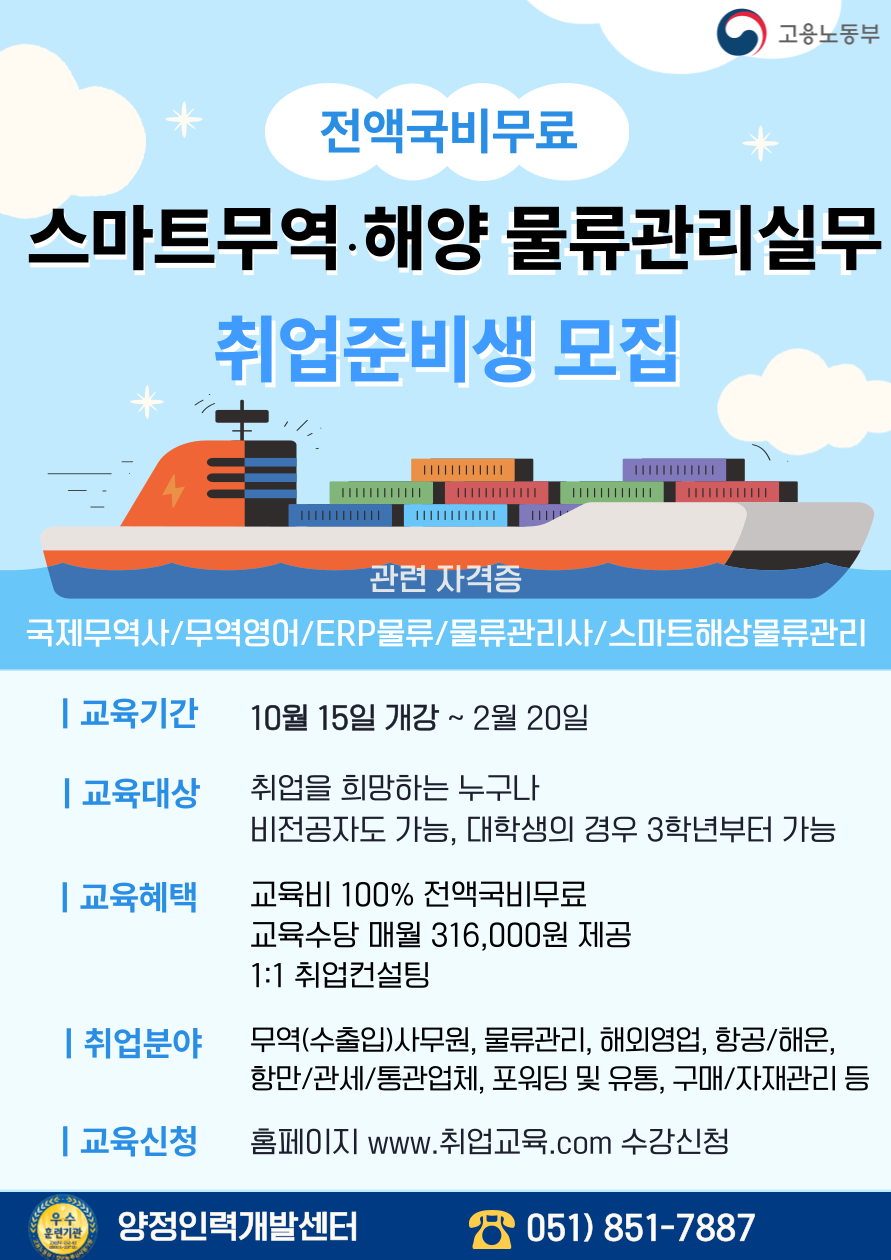 - 과정명 : 스마트무역・해양 물류관리 실무자 양성