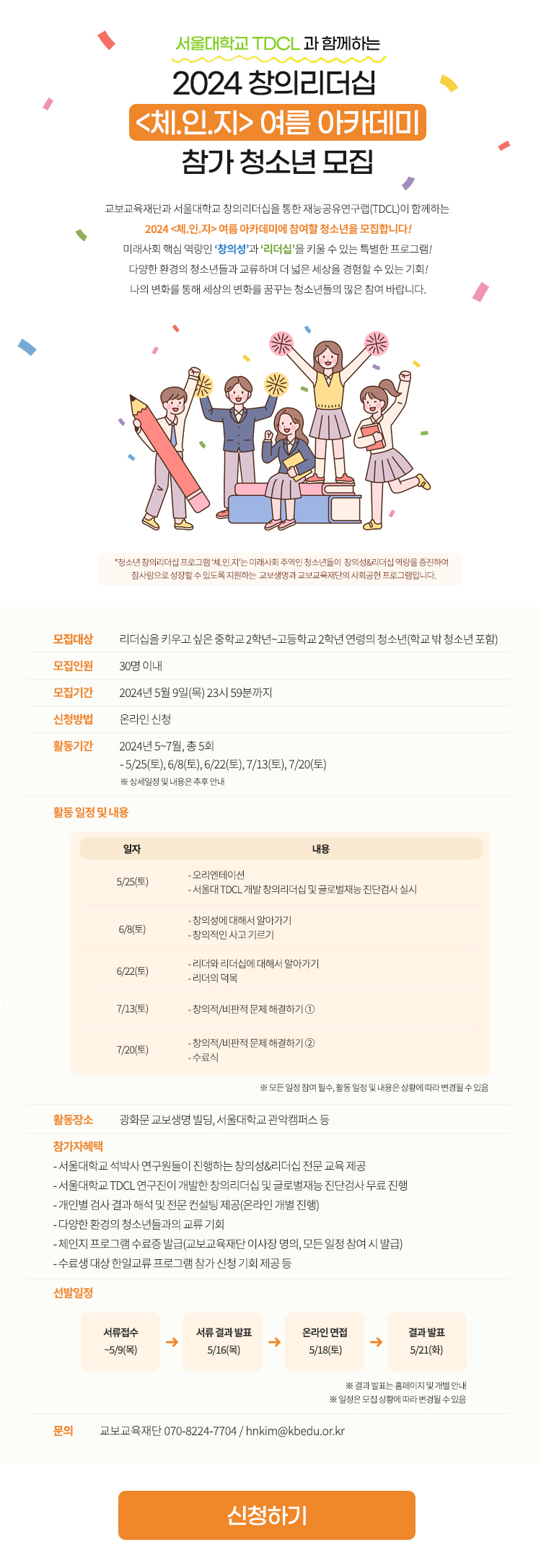 2024 창의리더십 <체.인.지> 여름 아카데미