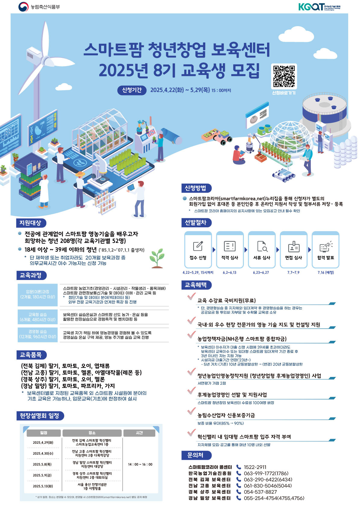 • 전공에 관계없이 스마트팜 영농기술을 배우고자 희망하는 청년 208명(각 교육기관별 52명)