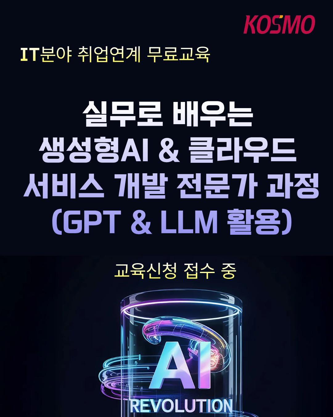 - 과정명 : 실무로 배우는 생성형AI & 클라우드 서비스 개발 전문가 과정(GPT & LLM 활용) with 바이브코딩