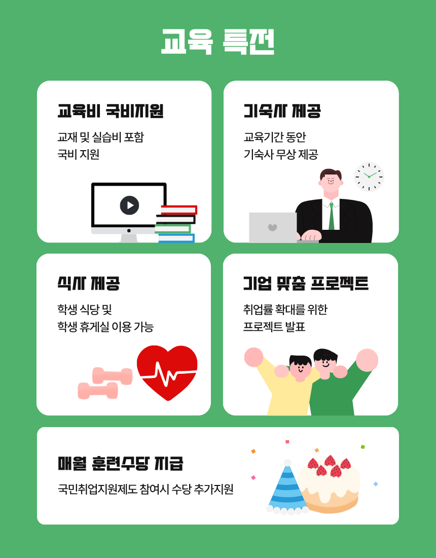 - 매월 훈련수당 지급(출석 기준, 기준 금액은 공고 참고)