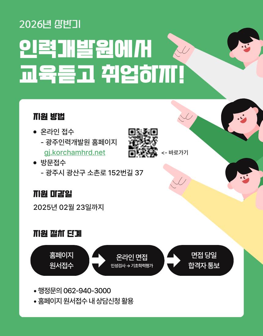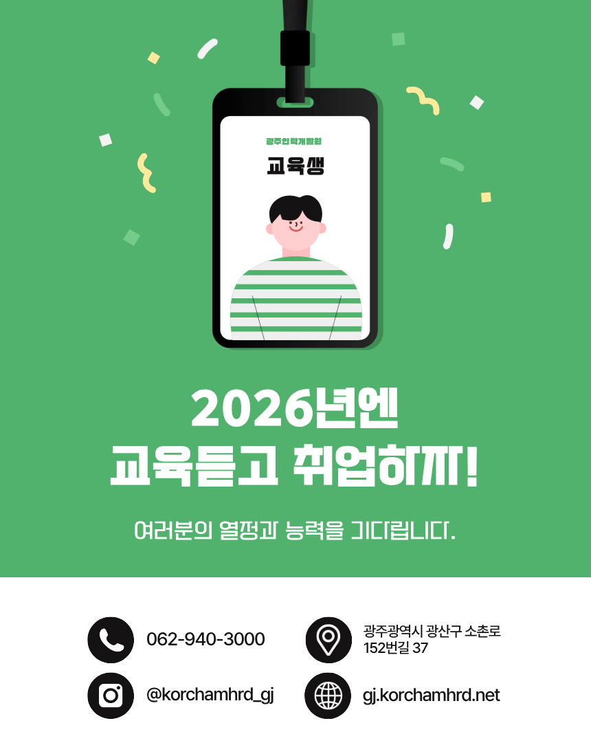 방문 접수: 광주시 광산구 소촌로 15번길 237 (대한상공회의소 광주인력개발원)