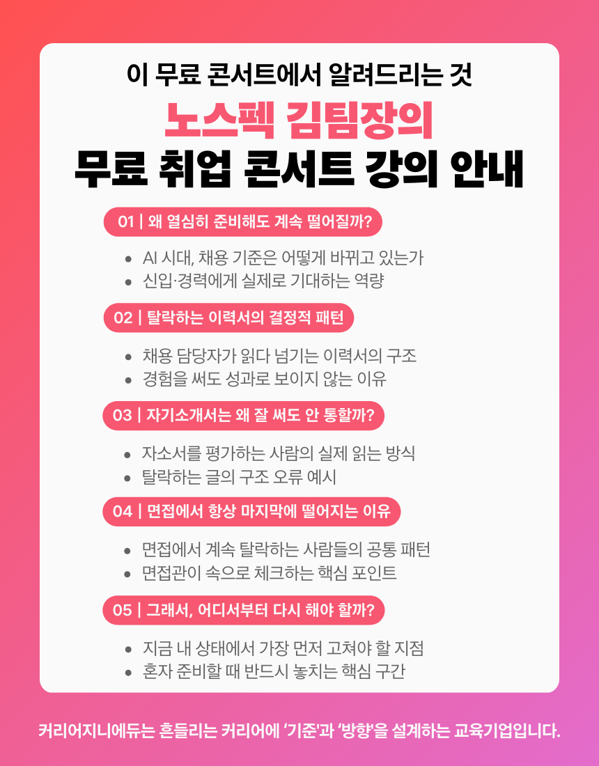 [무료특강] 노스펙자도 가능한 취업 로드맵 설계전략 줌 취업특강 모집