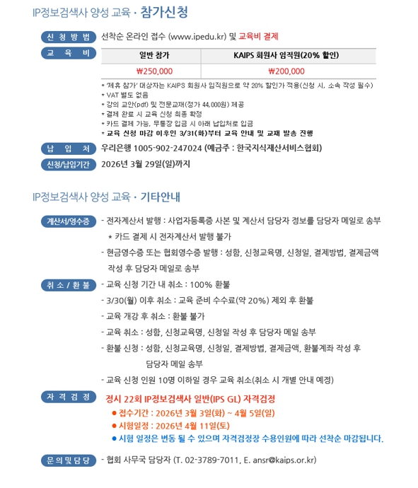(협회 교육 담당) 02-3789-7011 / ansr@kaips.or.kr
