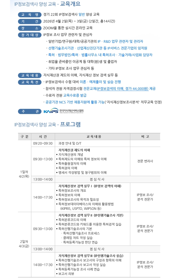 2026년 1차 IP정보검색사 양성과정 교육생 모집