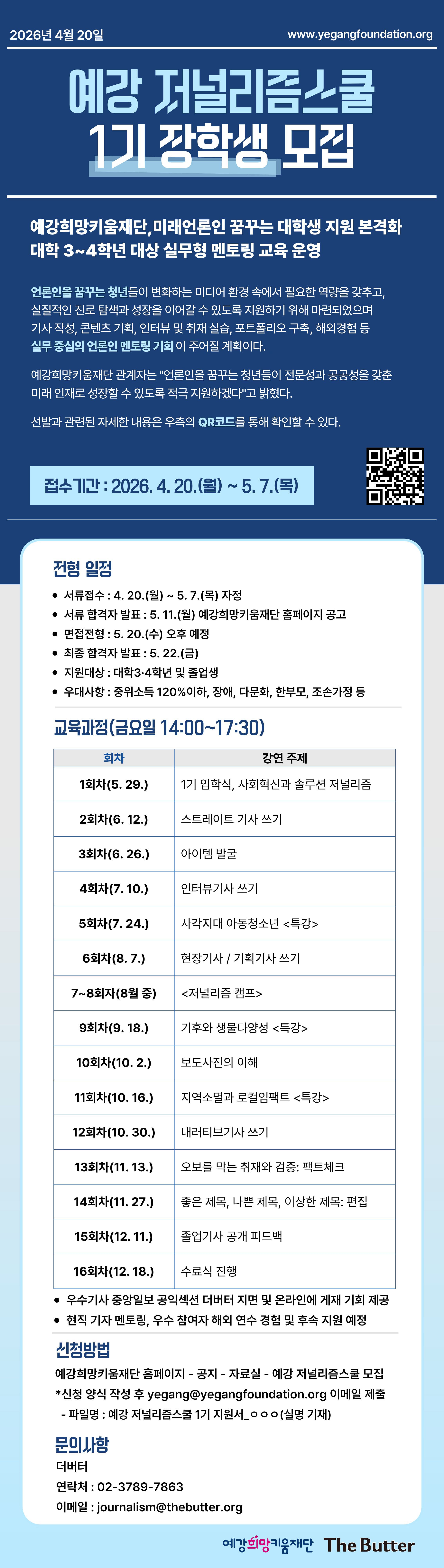문의 전화: 02-3789-7863, 이메일: journalism@thebutter.org