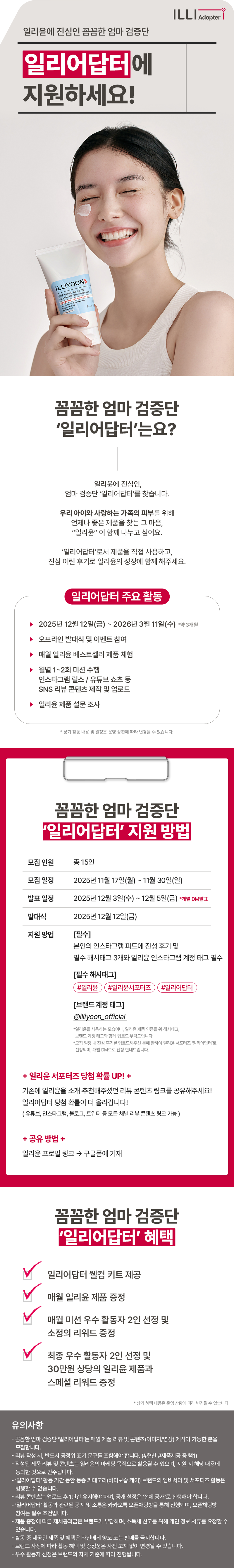 - 최종 우수 활동자 2인 선정 및 30만원 상당의 일리윤 제품과 스페셜 리워드 증정