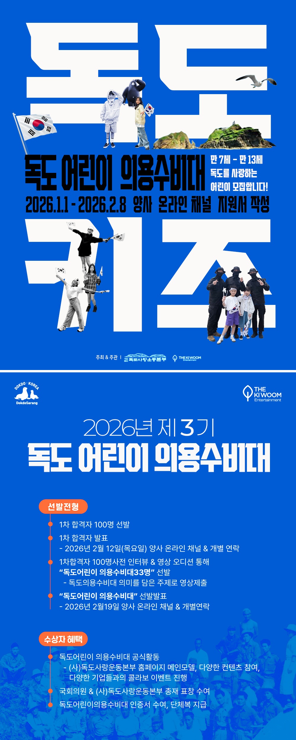 1차합격자 100명사전 인터뷰 & 영상 오디션 통해 "독도어린이 의용수비대33명" 선발