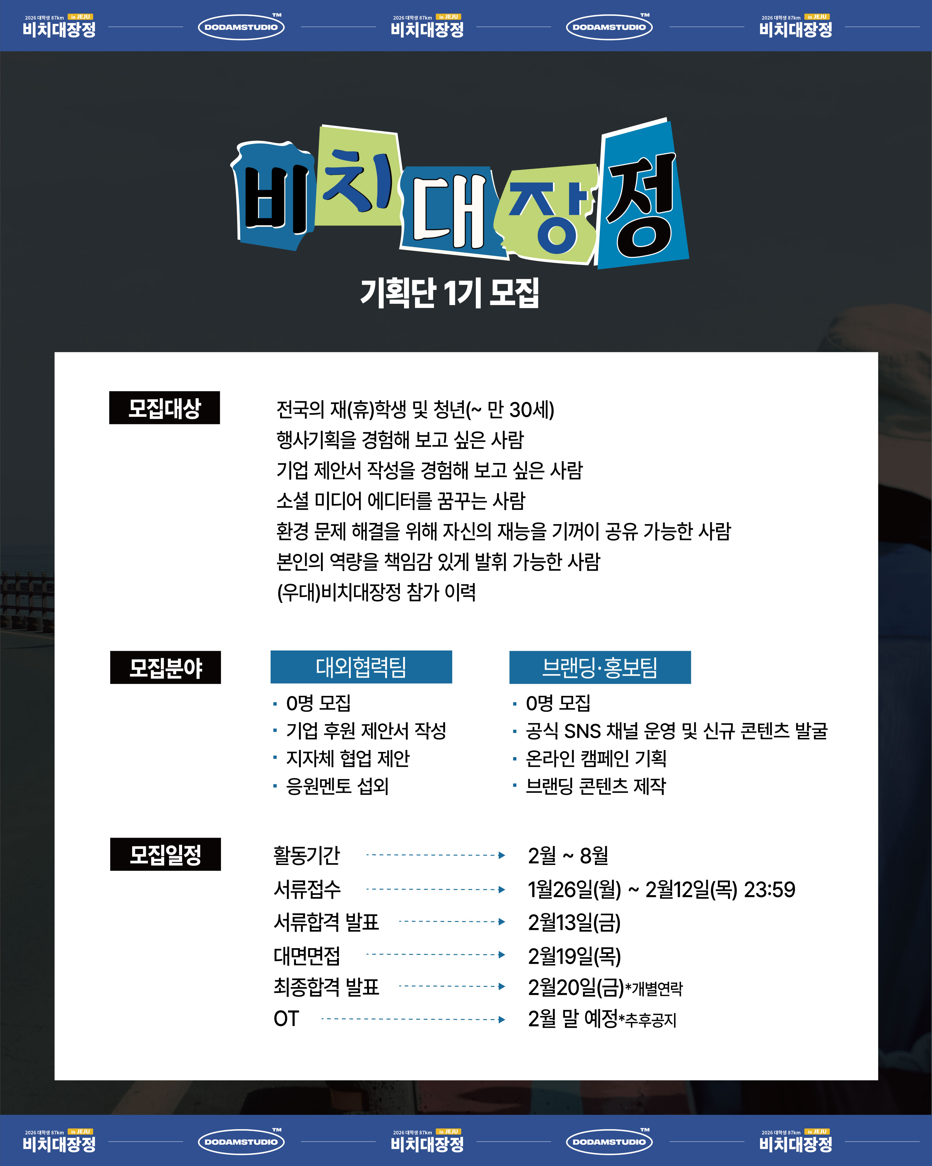 2026 대학생 87km 비치대장정 in jeju : 기획단을 모집 합니다!