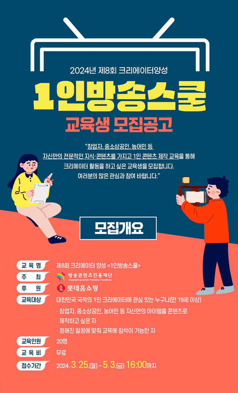 2024년 제8회 크리에이터양성 <1인방송스쿨> 교육생 모집공고