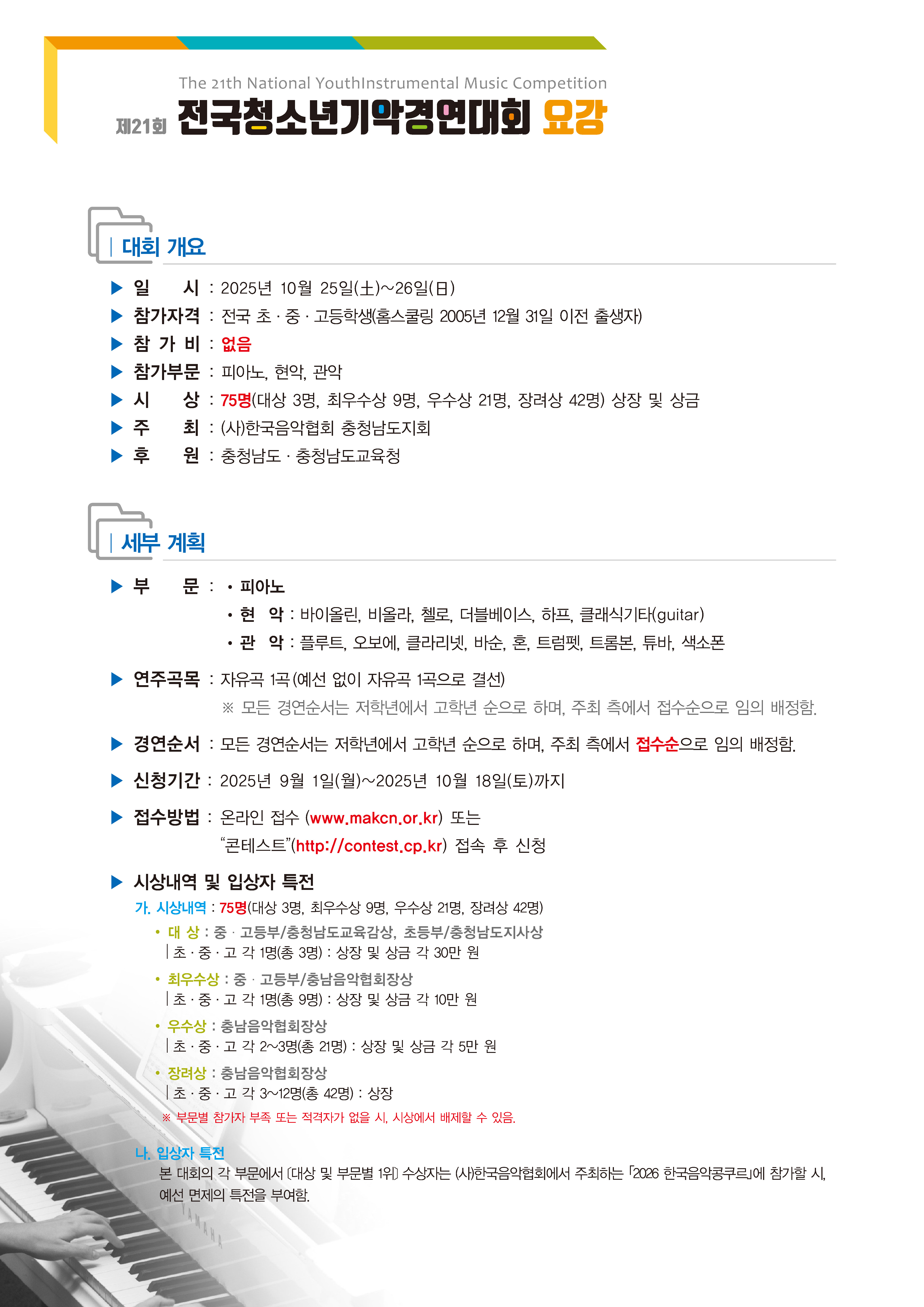 | 주최 . 주관 | 사)한국음악협회 충청남도지회 |